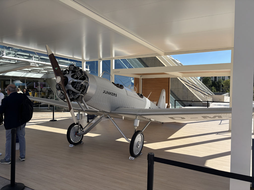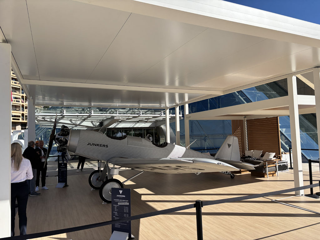 Junkers est une société d’aviation basée en Allemagne. Elle présentait son A50 Heritage, un restomod aéronautique qui reprend les codes esthétiques des avions allemands Junkers des années 1910-1940 : voilure en tôle ondulée, biplace en tandem à l’air libre, moteur en étoile et hélice en bois, train fixe tricycle à roulette de queue, tableau de bord analogique ! Ah les petites aiguilles blanches qui tremblotent dans les compteurs noirs… De plus l’avion est équipé d’un GRS, Galaxy Rescue System, c’est à dire d’un parachute capable de ramener l’avion au sol à plat en cas de problème.