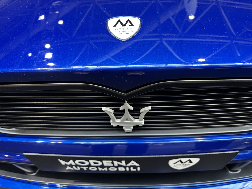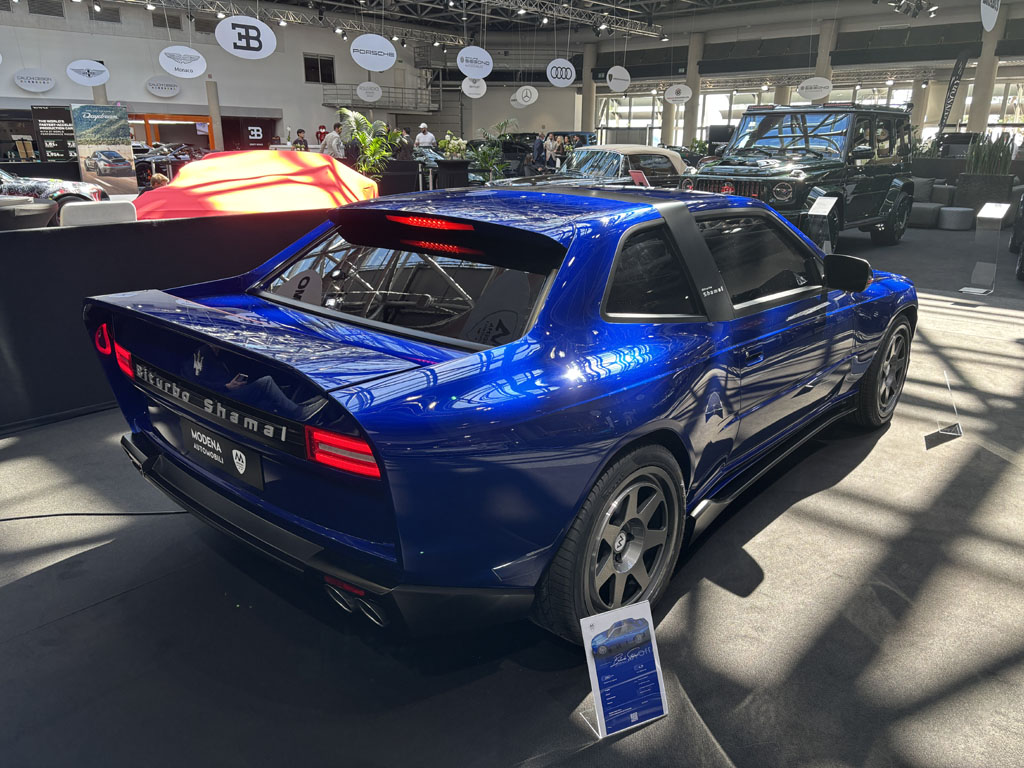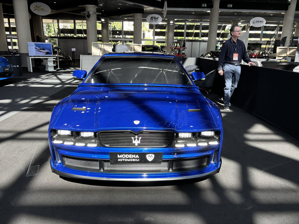 Cette société est installée à Modène, au cœur de la Motor Valley italienne, et bénéficie du savoir-faire des innombrables compétences automobiles de la région. Le projet MA-01 est un « restomod » qu’ils ont dévoilé à Monaco, qui reprend le concept de la Maserati Shamal construite de 1989 à 1996 à 369 exemplaires, mais avec toute la technologie moderne. On retrouve les lignes générales de la Shamal, modernisées, plus agressives, avec toujours le bandeau-arceau central. Côté motorisation, on trouvera le V6 biturbo de la Maserati Ghibli S actuelle, 500 chevaux. En effet, la voiture présentée ici est une maquette échelle 1. Ils ont aussi un restomod de Maserati Merak en projet.
