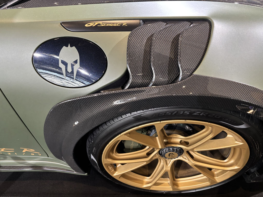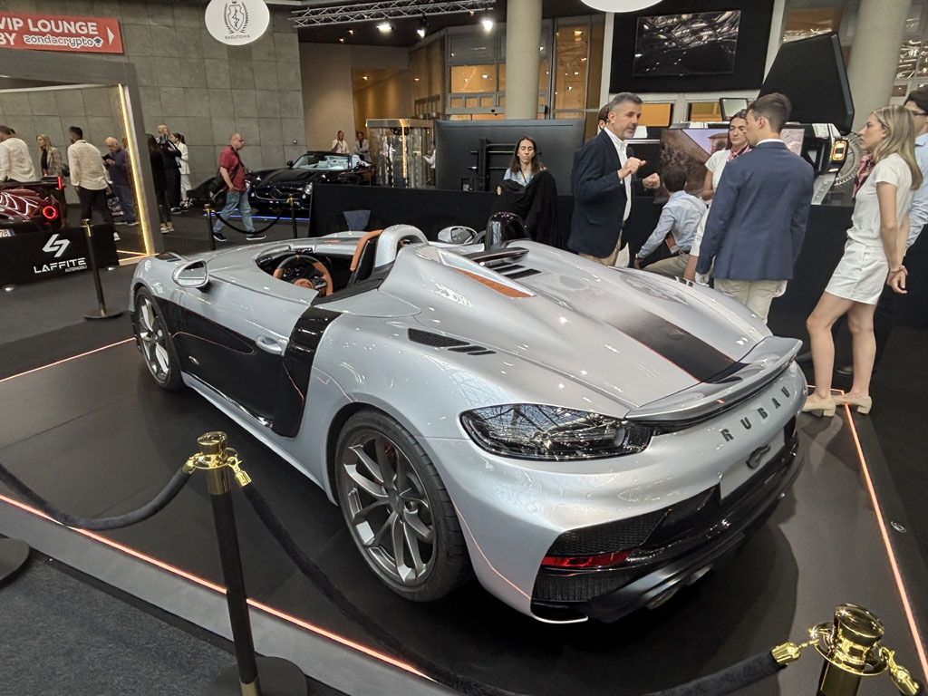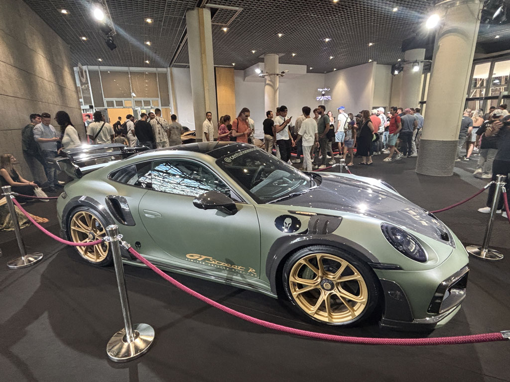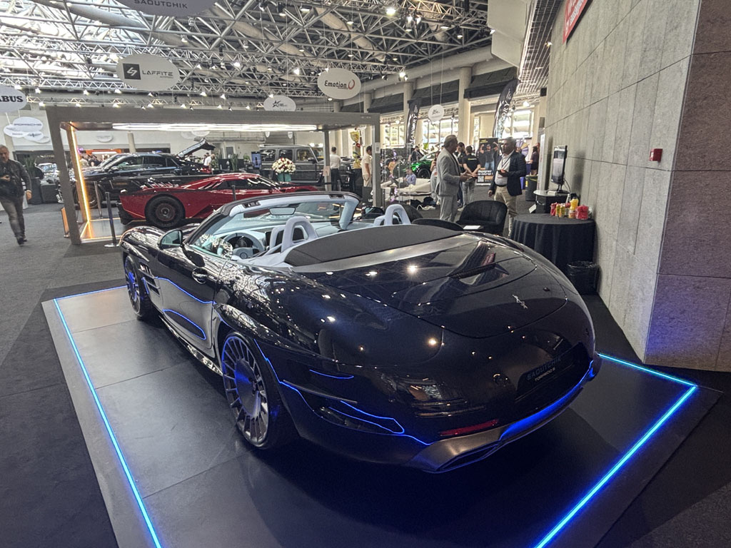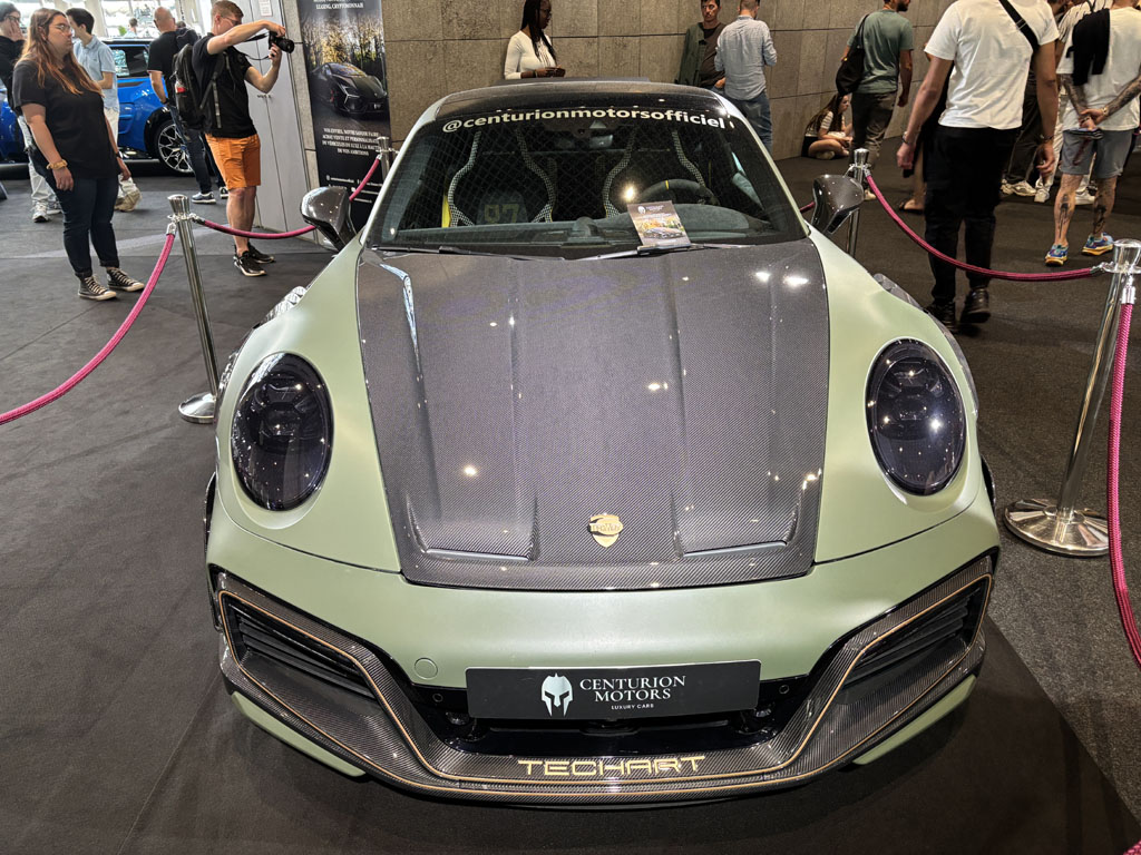 La société EliteWrap est basée à Cannes et spécialisée dans les coverings, traitements céramiques, films PPF et la transformation de véhicules. Parmi les modèles présentés j’ai remarqué cette Porsche 992 Stinger GTR entièrement transformée par l’ajout d’accessoires et de pièces carbone souvent collées sur les pièces de carrosserie d’origine, afin d’éviter une nouvelle homologation. Compter 430 000 € pour cette auto basée sur une 992 de 150 km, ou bien 120 000 € si vous apportez la voiture.