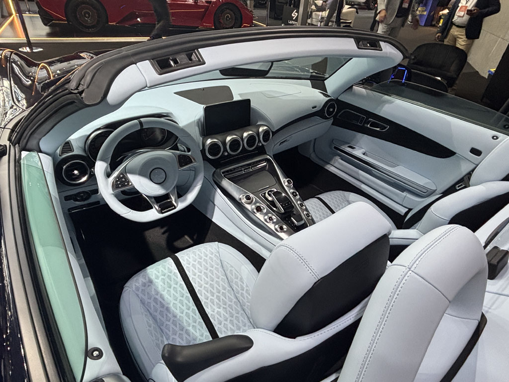 Le préparateur allemand était bien sûr présent sur un vaste stand au centre avec ses sempiternels Classe G bodybuildés. Ils font aussi de la restauration d’anciennes et présentaient cette Mercedes 280 SE cabriolet de 1971 avec moteur V8 3,5 litres 200 chevaux. Dites un prix pour voir ? 703 864,80 €, ils calculent au centime près chez Brabus, pour une auto qu’on trouvait à vil prix il n’y a pas si longtemps !