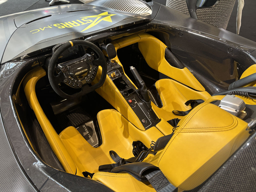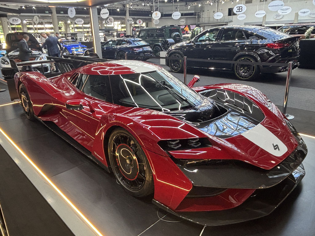 On rappelle que c’est une hypercar homologuée pour la route mais pensée « 24H du Mans ». La société a été créée en Italie par Bruno Laffite, neveu du pilote de F1 bien connu et s’appuie sur l’entreprise italienne de construction Gianetti. 1150 chevaux via une propulsion hybride avec un V8. On n’en sait guère plus que l’an passé. En ont-ils vendu depuis l’an dernier ?