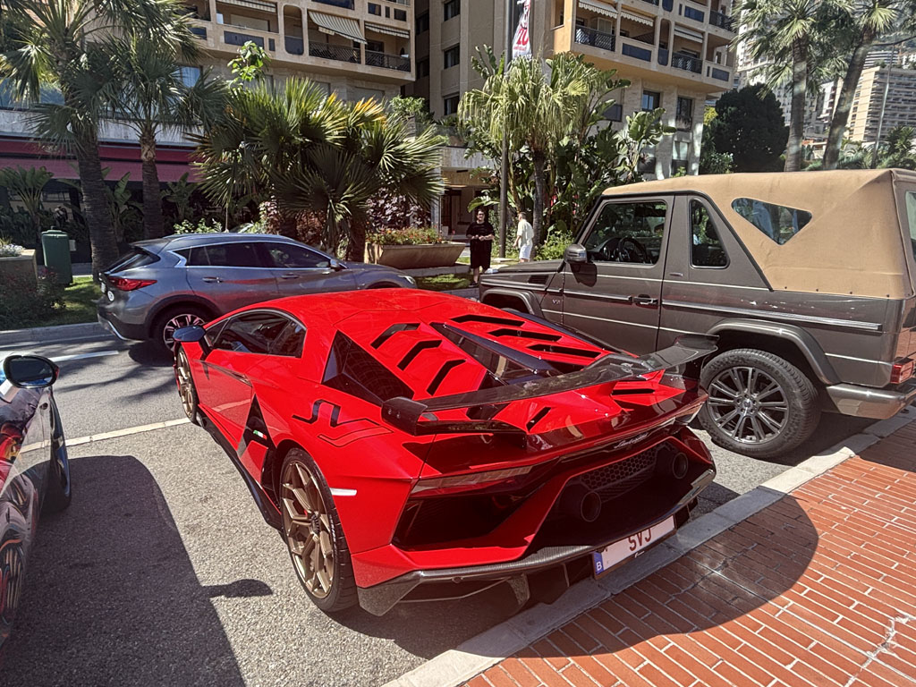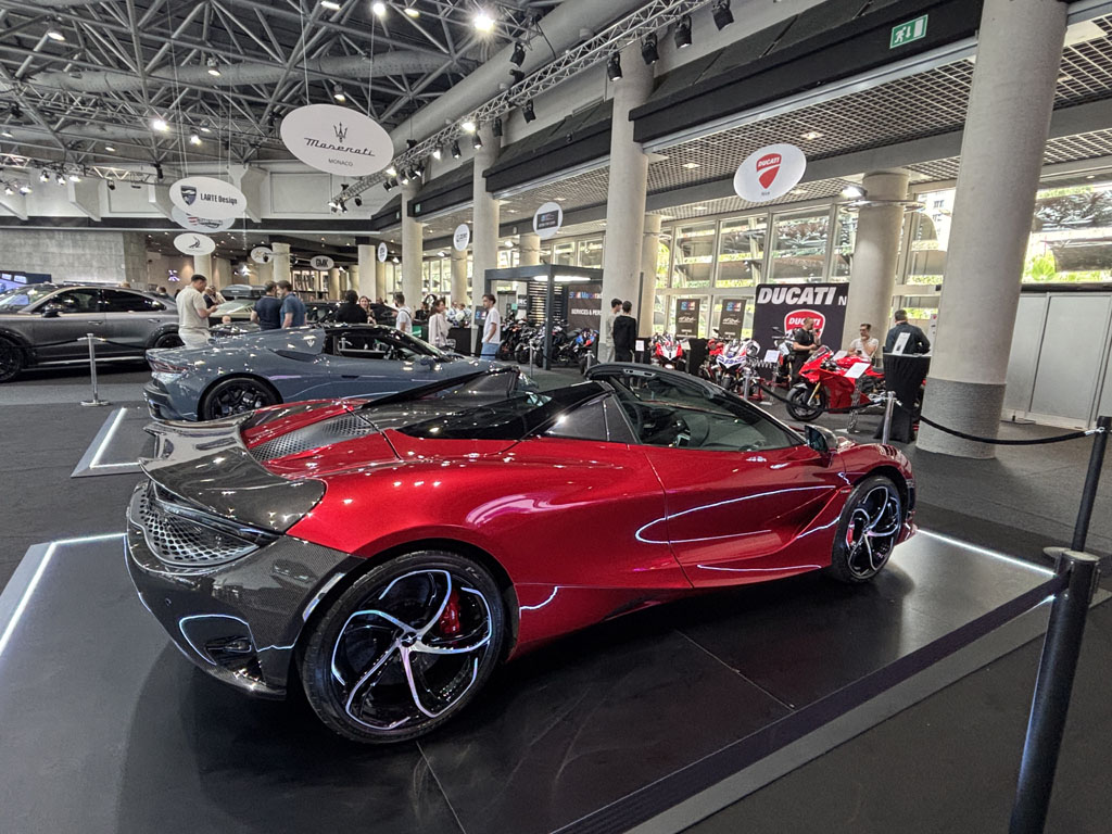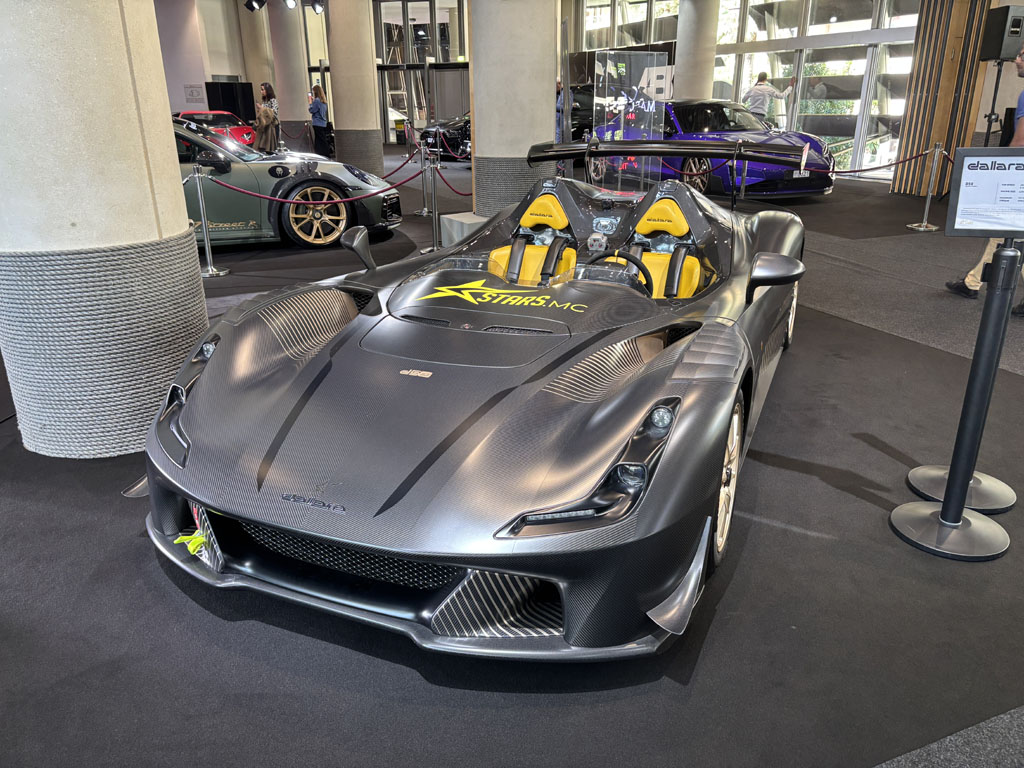 Outre les concessions Ferrari, Aston Martin, Rolls, McLaren, Mercedes en face du Grimaldi Forum, on pouvait spotter quelques belles autos d’exposants ou de VIPs garées devant :