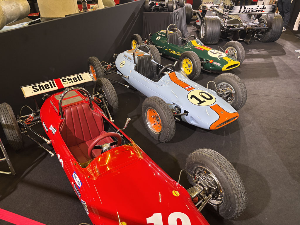 Elle était présentée sur le stand de l’Atelier des Légendes qui proposait aussi pour les enfants de très jolies répliques de Formule 1 à l’échelle 1/2 style sixties, propulsées par un petit moteur thermique de 125 cc. Vitesse 60 km/h, freinage 4 disques ventilés à étriers Brembo et amortisseurs à gaz réglables s’il vous plait !