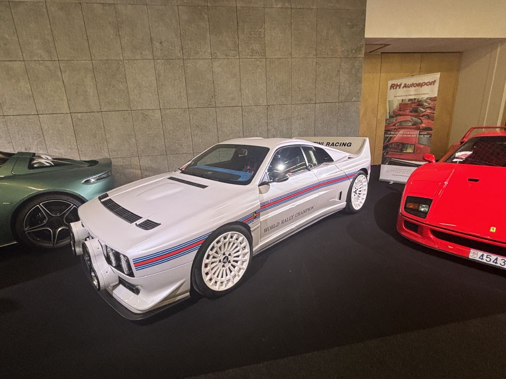 C’est le garage de Raoul Marchisio à Monaco. 3 voitures exposées, une Aston Martin Roadster, une Lancia 037 et une Ferrari F40 :
